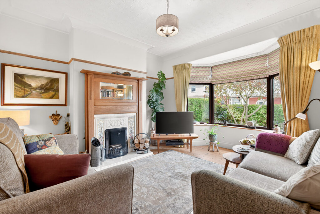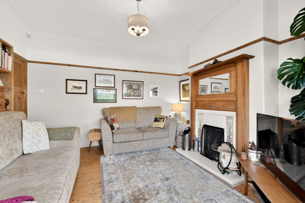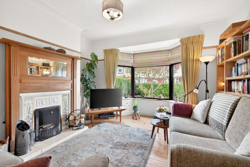 For larger families, the first reception room offers an additional generous living area. Overlooking the pretty front garden, it is bright and spacious, enhanced by an attractive bay window and an open fire with a characterful surround.