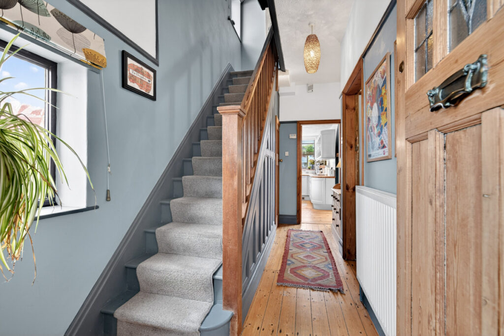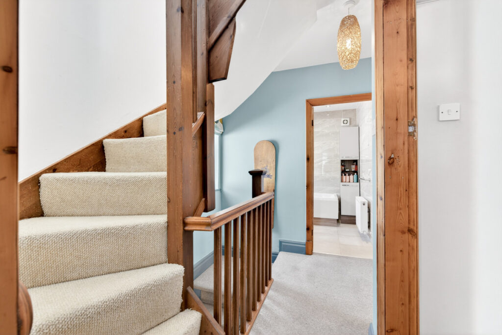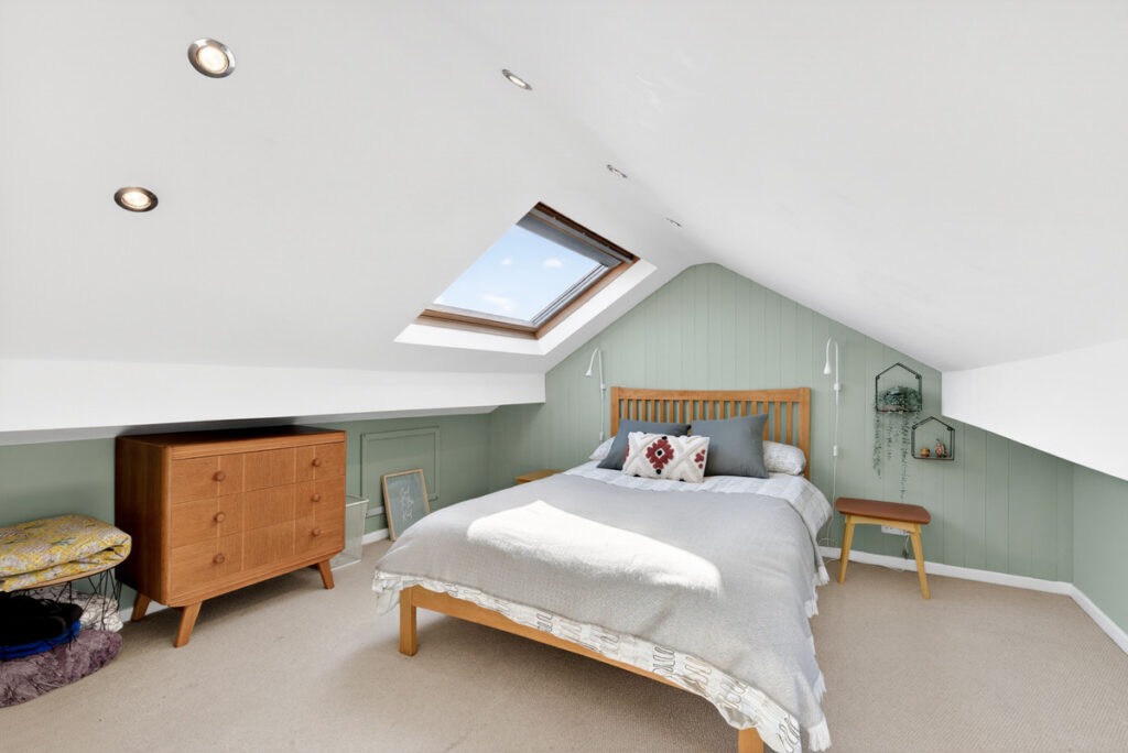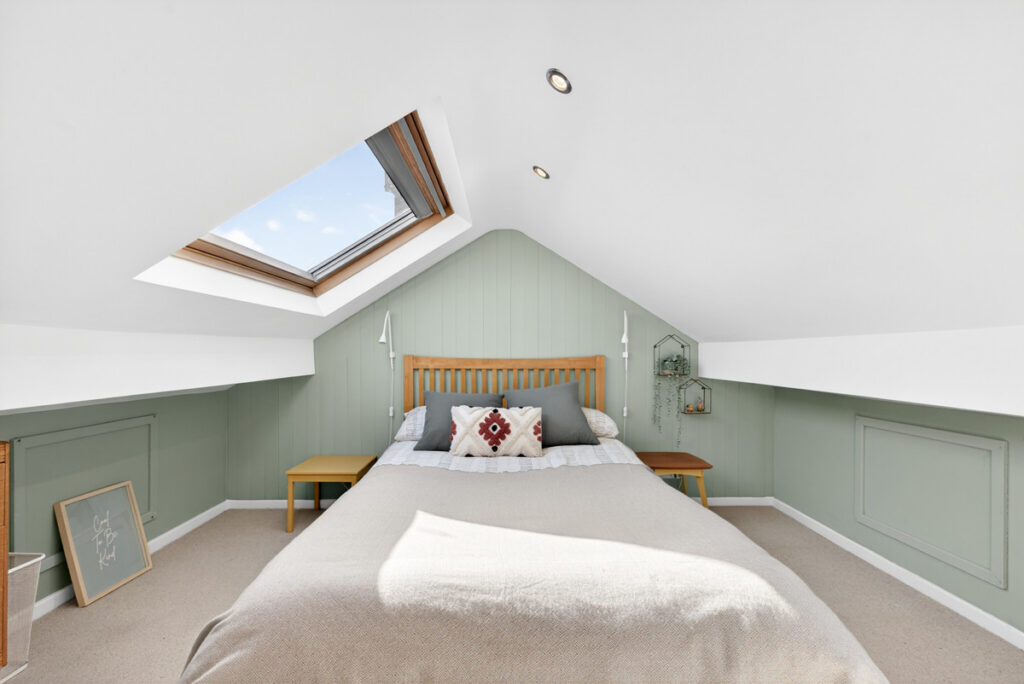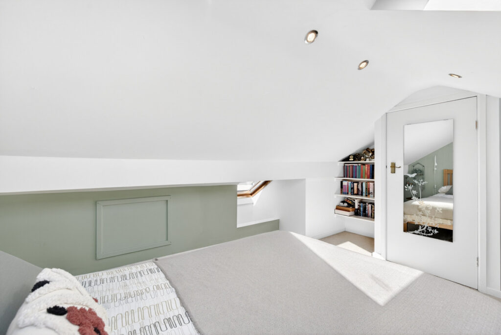 Stairs lead to the loft room, which has been whitewashed to create a bright, airy retreat. With two Velux windows and ample under‑eaves storage, it offers valuable additional space, ideal as a fourth bedroom for a growing family. Please note there is restricted head height in some areas.