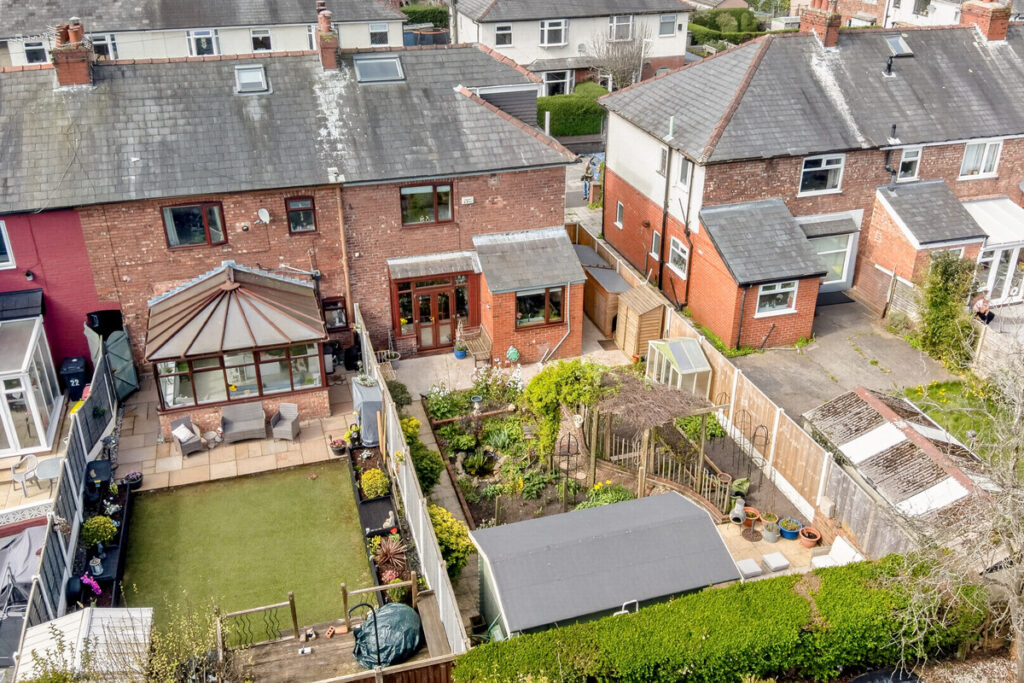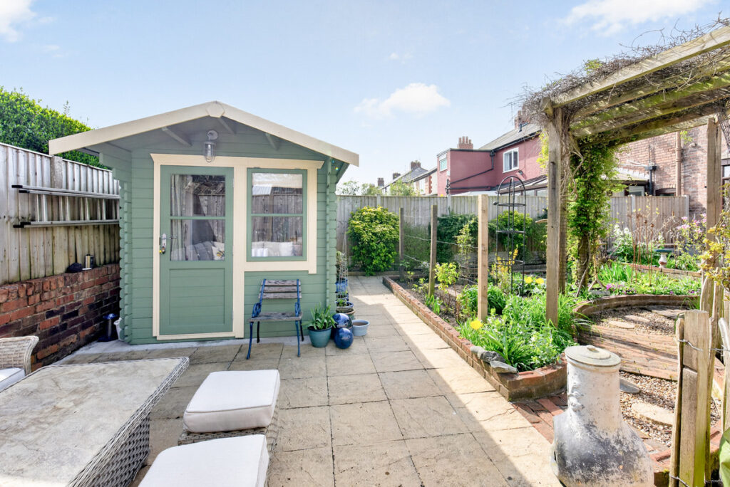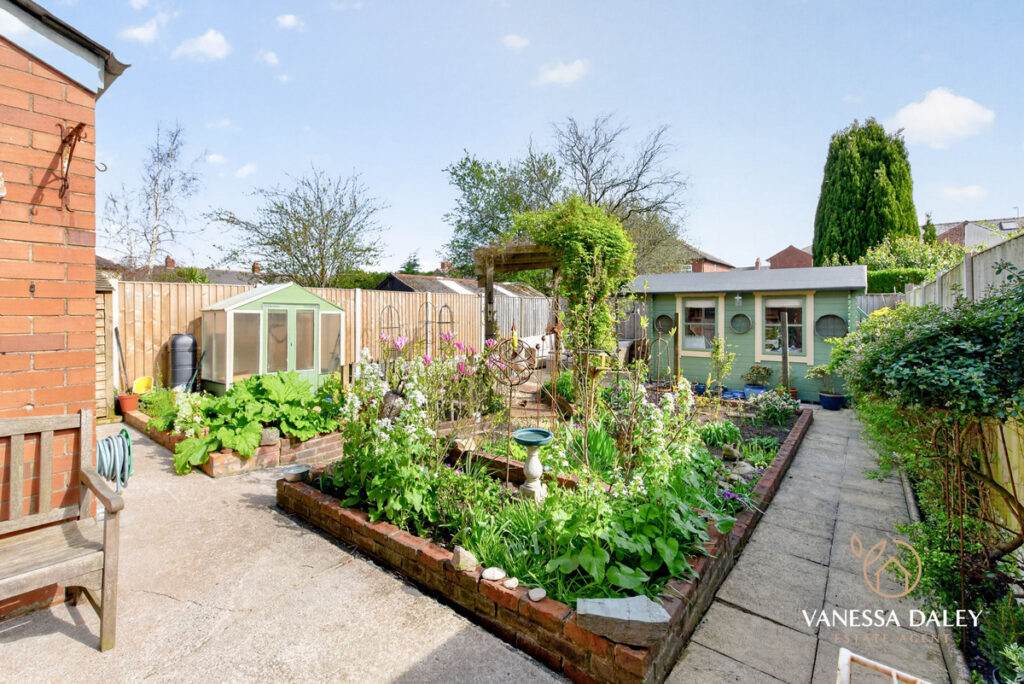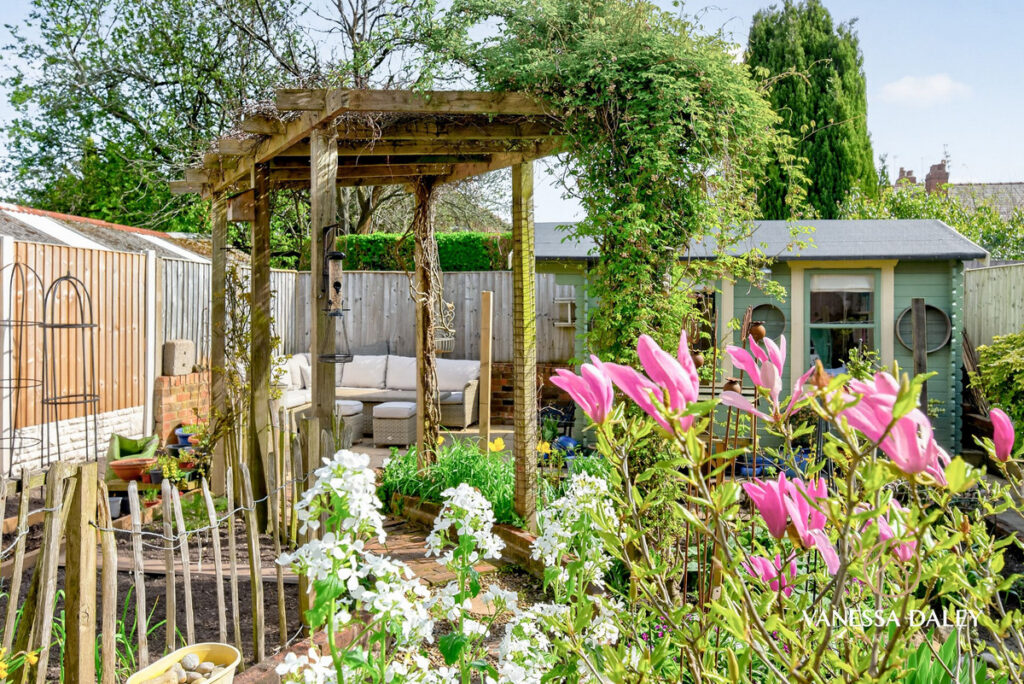 The garden is a true credit to the owners. Thoughtfully landscaped with pathways, borders, a pergola walkway, pond, and raised vegetable beds, it is a gardener’s paradise. The summer house, equipped with full electrics, provides an excellent hobby or workspace. To the side of the property, gated access leads to four useful storage sheds and additional outdoor space.
