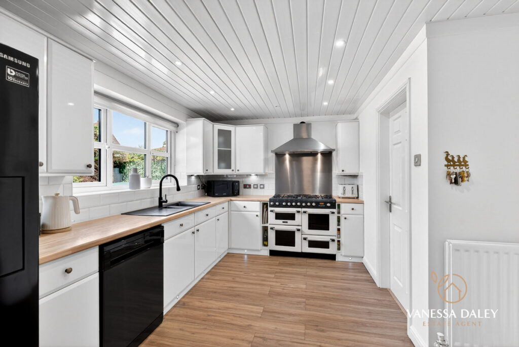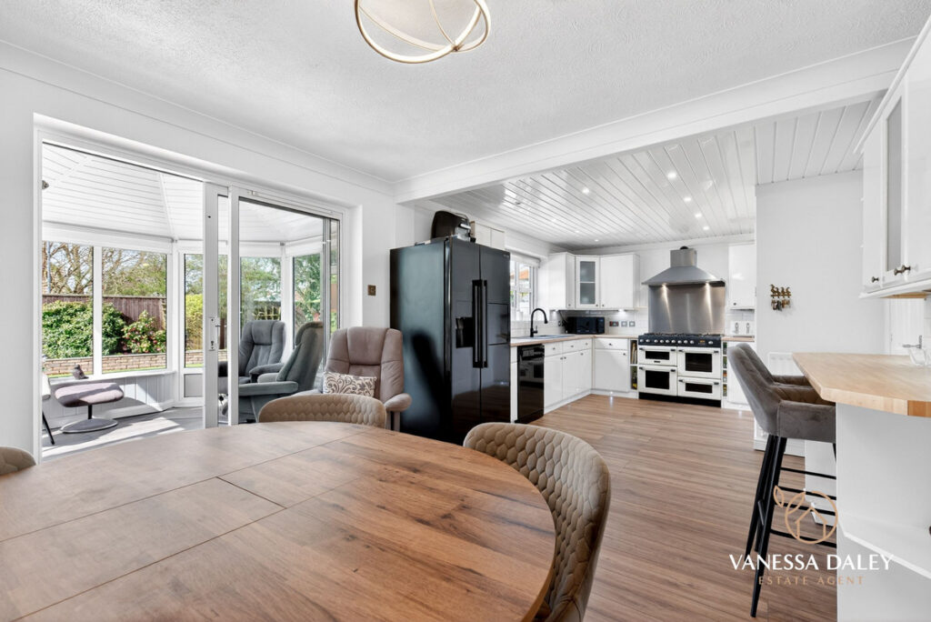 Set well back from the road, the house is notably spacious, with an elegant and beautifully styled interior throughout. Four versatile reception rooms offer abundant living space: a ground‑floor study overlooking the front garden, a striking Orangery with views across the rear garden, a dual‑aspect living room, and an impressive open‑plan dining kitchen measuring approximately 7m x 3.5m—the true heart of the home.
