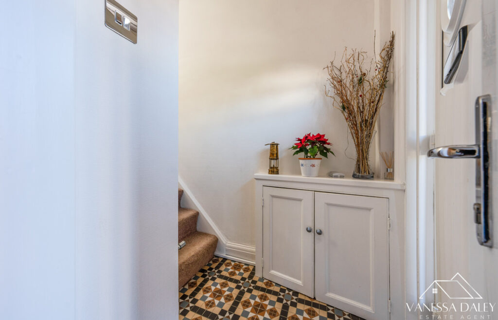 The hallway is small yet inviting with an attractive mosaic tiled floor and there’s also a ground floor WC. The first floor bedrooms are a good size, two are doubles with ample space for furniture and the third is a single room, which the current owners use as an office.