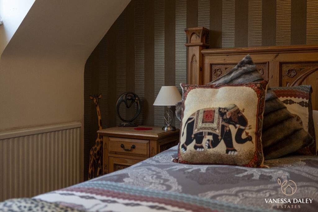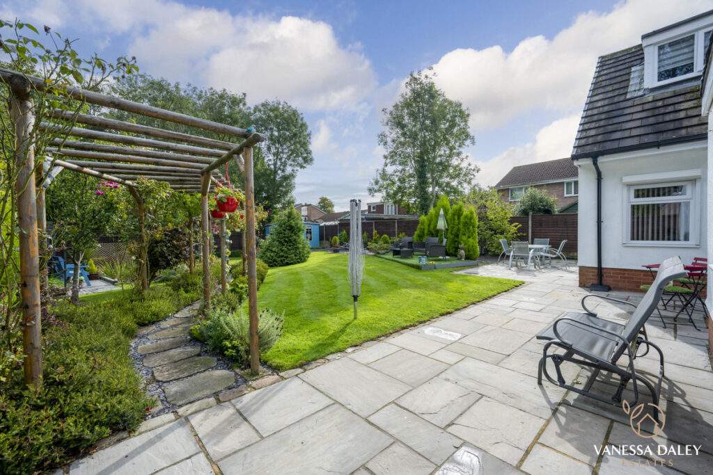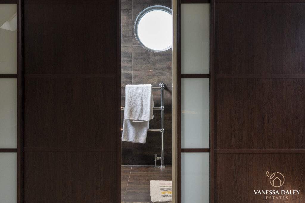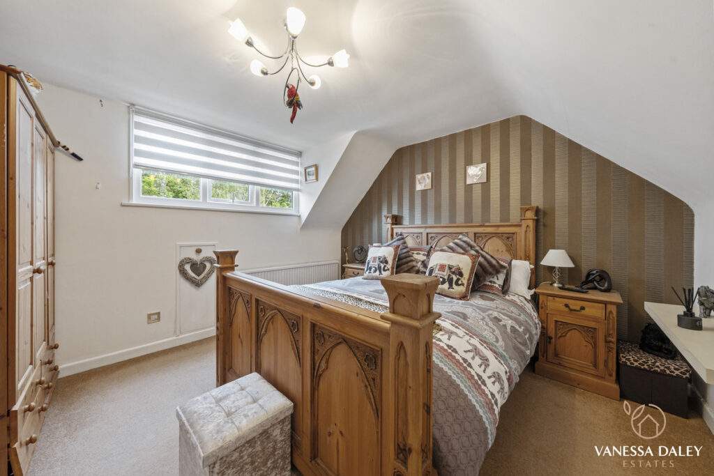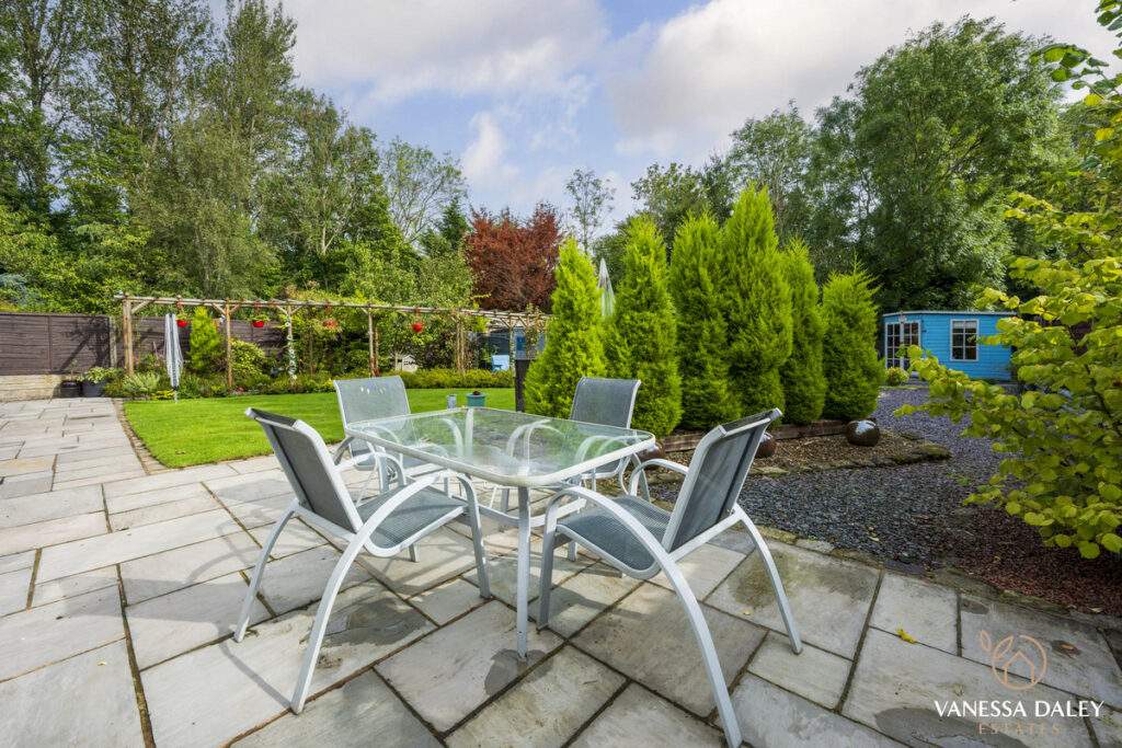 The integral double garage with a workshop is ideal for those needing extra storage or workspace. The front and rear gardens are landscaped attractively and to the bottom of the garden, there are mature trees beyond which enhances the feeling of nature and privacy. The garden is interesting with multiple places to sit and enjoy different vistas, and there’s a charming walkthrough pergola with wooden bridge. The outdoor garden room is a perfect space to work from home or relax in beautiful surroundings. For nature lovers, the garden has a vegetable patch and a variety of fruit trees and shrubs to include pear tree, hazelnut tree, loganberries, blackcurrants and strawberries.
