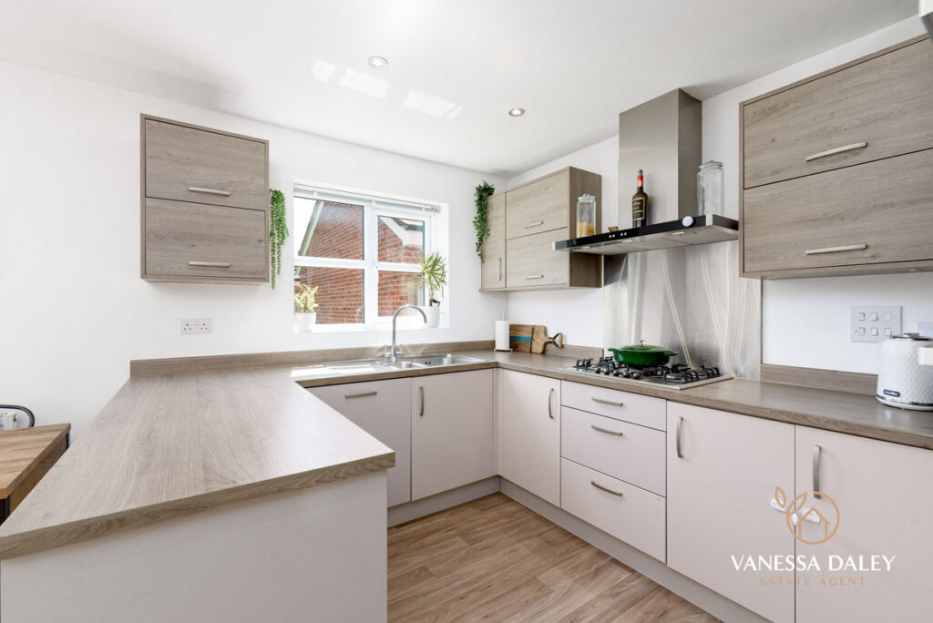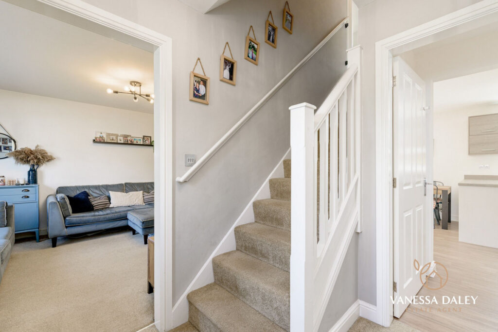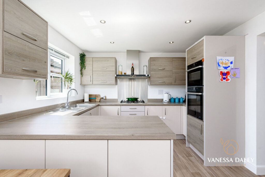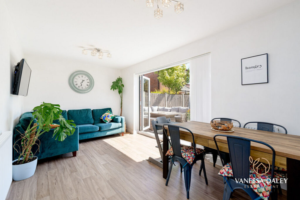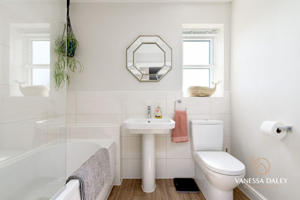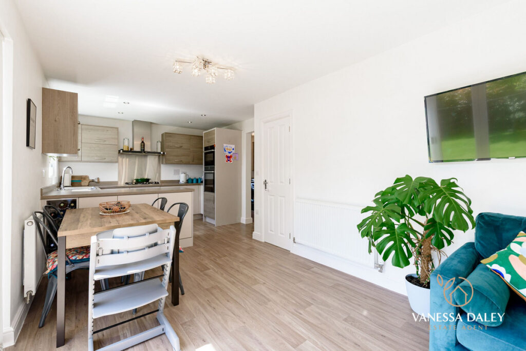 The layout is perfect with the living room being a good size overlooking the front garden and the open plan dining kitchen to the rear. A sociable lengthy room with ample room for a dining table and chairs and also a sofa, makes it the perfect space for families to come together. Conveniently, there is also a breakfast bar for informal dining too.