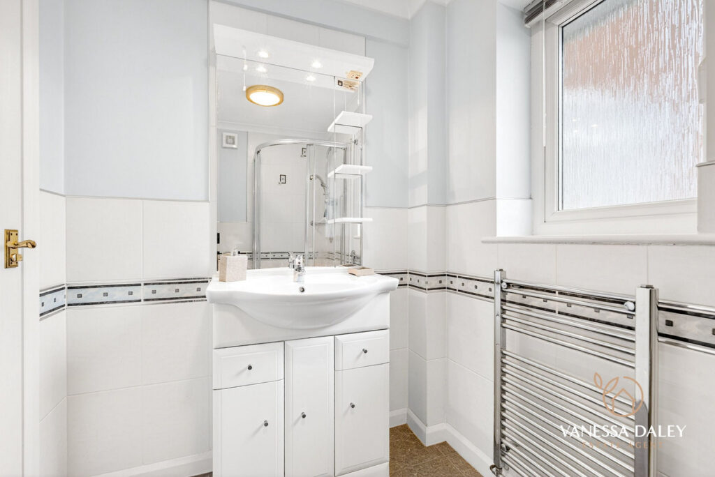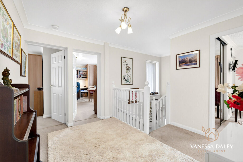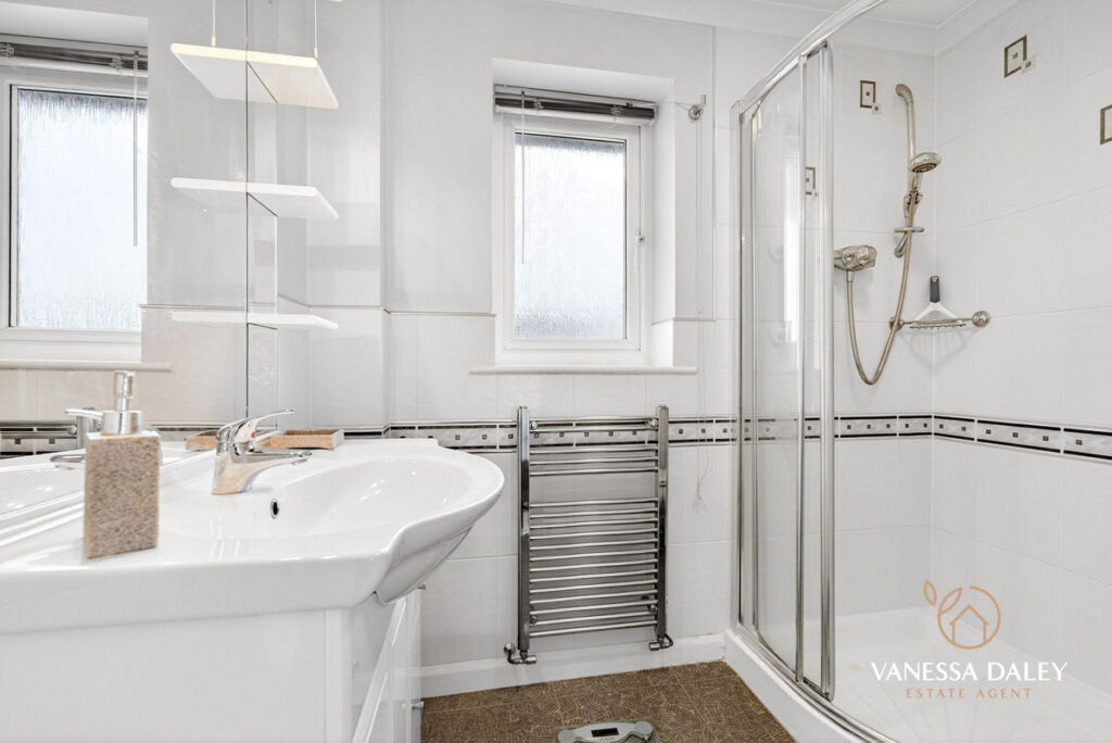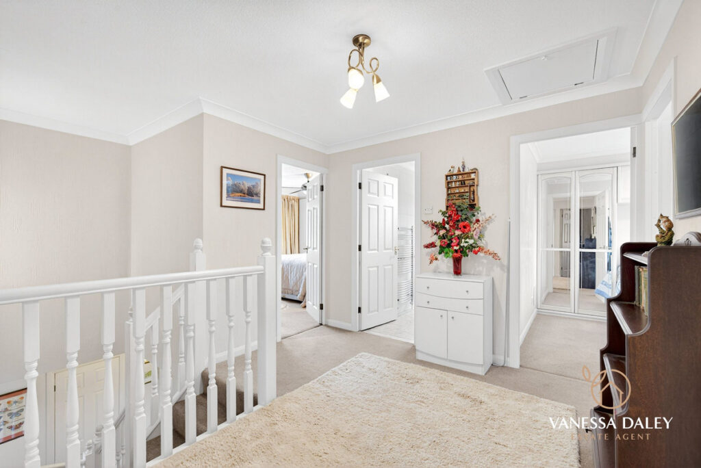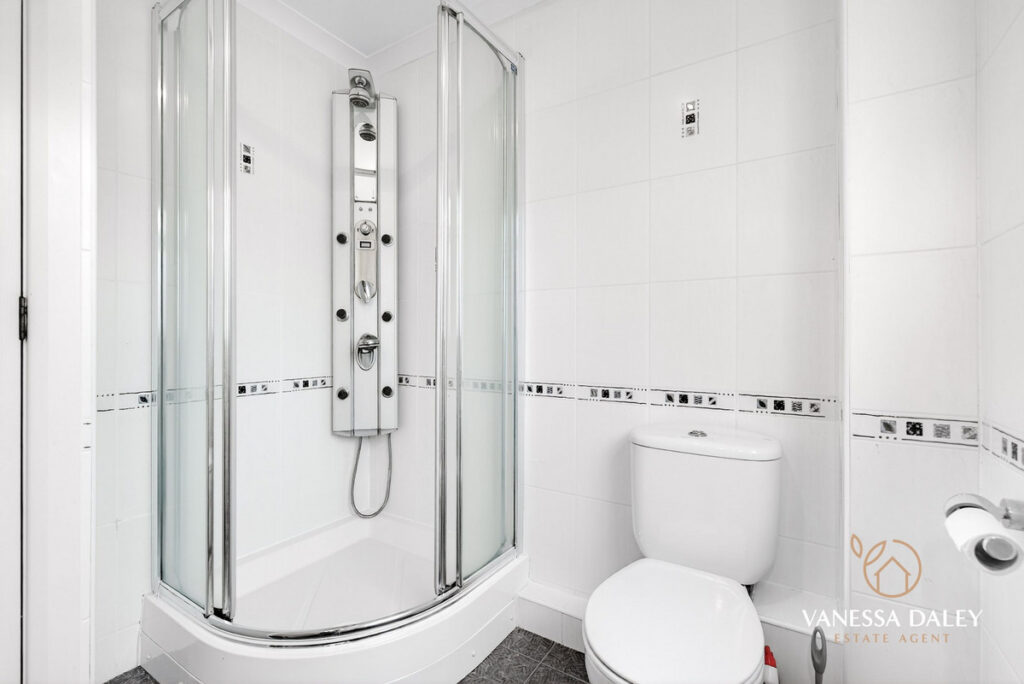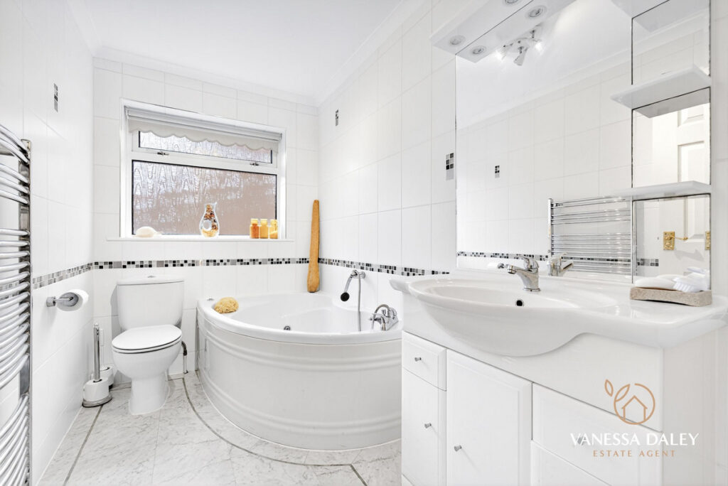 Originally a three-bedroom property, the home has been thoughtfully extended over the years and now offers five bedrooms. Four of these are well-proportioned doubles, each fitted with built-in furniture, allowing new owners to simply move in and settle straight away. The fifth bedroom is perfect as a single room, nursery, or a much-needed home office. With three bathrooms and four WCs, all finished in a contemporary style with white tiling and suites, the home is exceptionally practical. Highlights include an en-suite with a jacuzzi shower and a main bathroom featuring a deep corner jacuzzi bath.