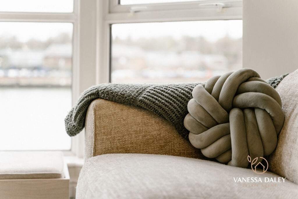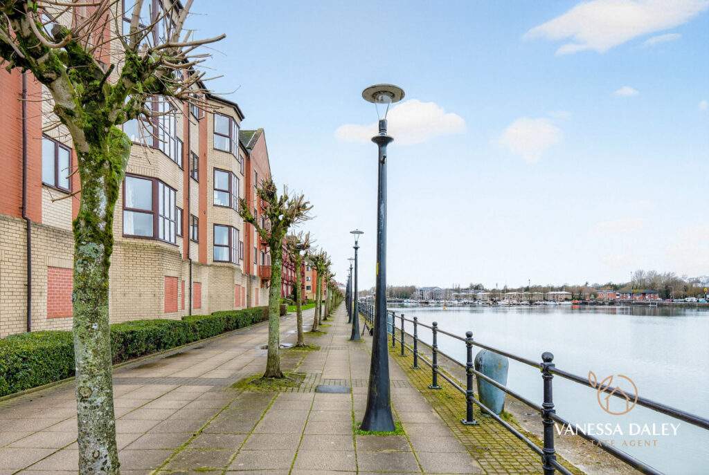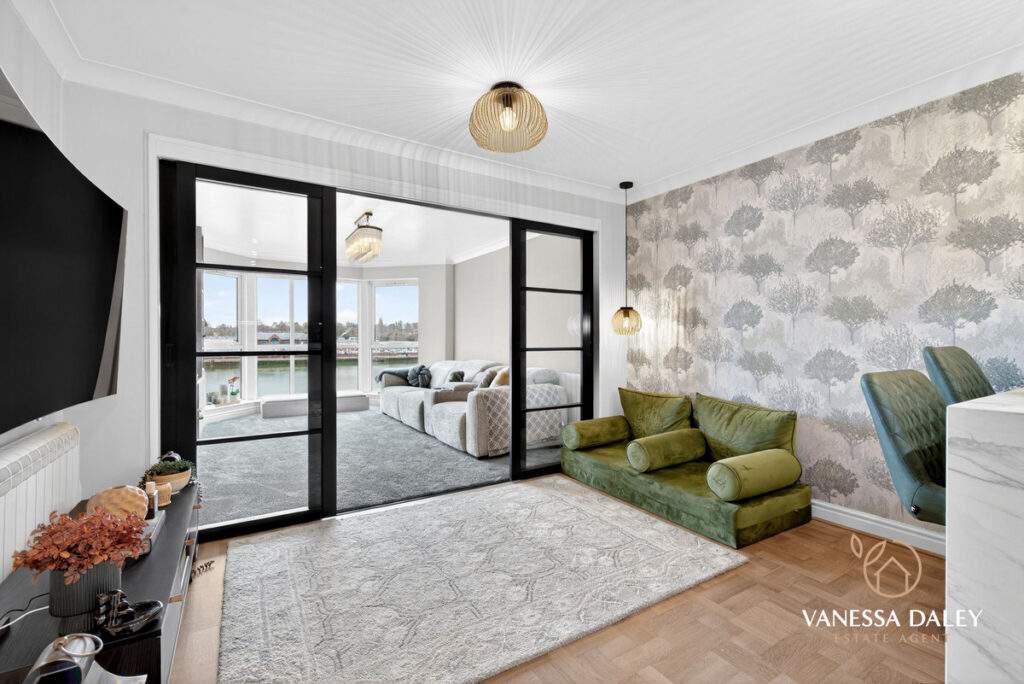 Inside, over 1,000 sq ft of beautifully arranged accommodation begins with a spacious, welcoming hallway. Double doors open into the main living areas, while the two bedrooms are thoughtfully positioned to offer privacy—each enjoying views across the docks.