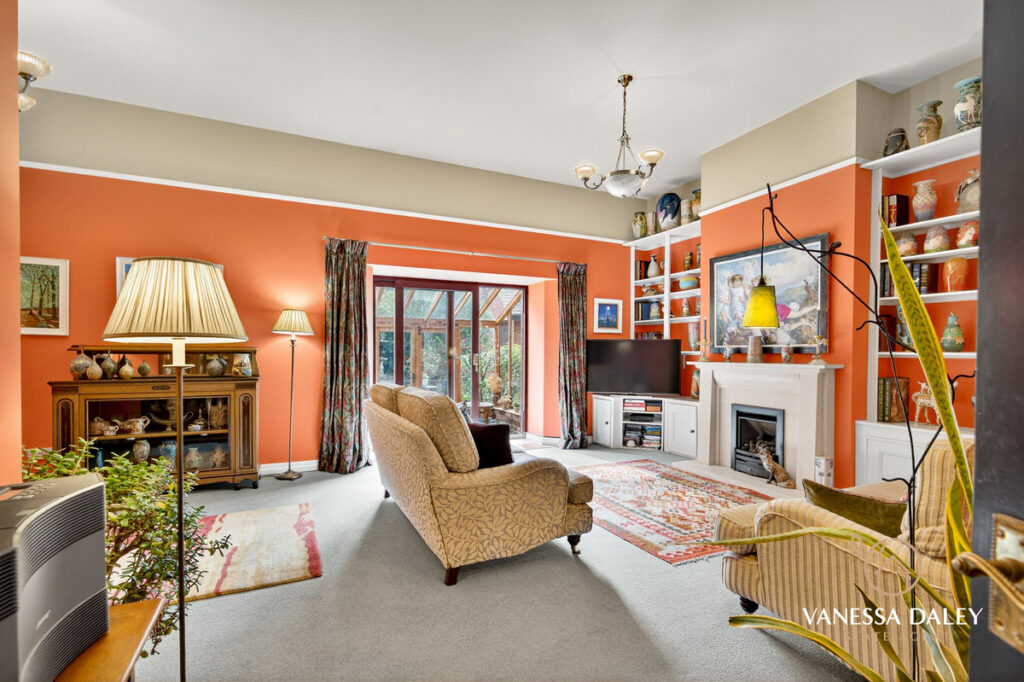 I love the size of the living room. A beautiful room which could actually be zoned into two areas as is deceptively large. Fitted alcove bookshelves and a cosy living flame gas fire for additional heating as required.