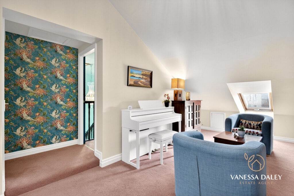 A fantastic extra space is the loft room which could lend itself as an ideal office / hobby room or bedroom. With two Velux windows to allow natural light in. Concealed cupboard housing the Worcester central heating boiler.