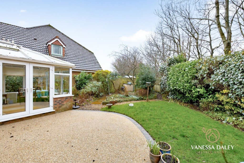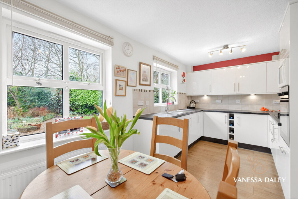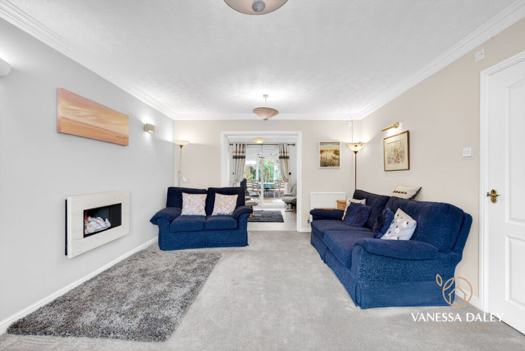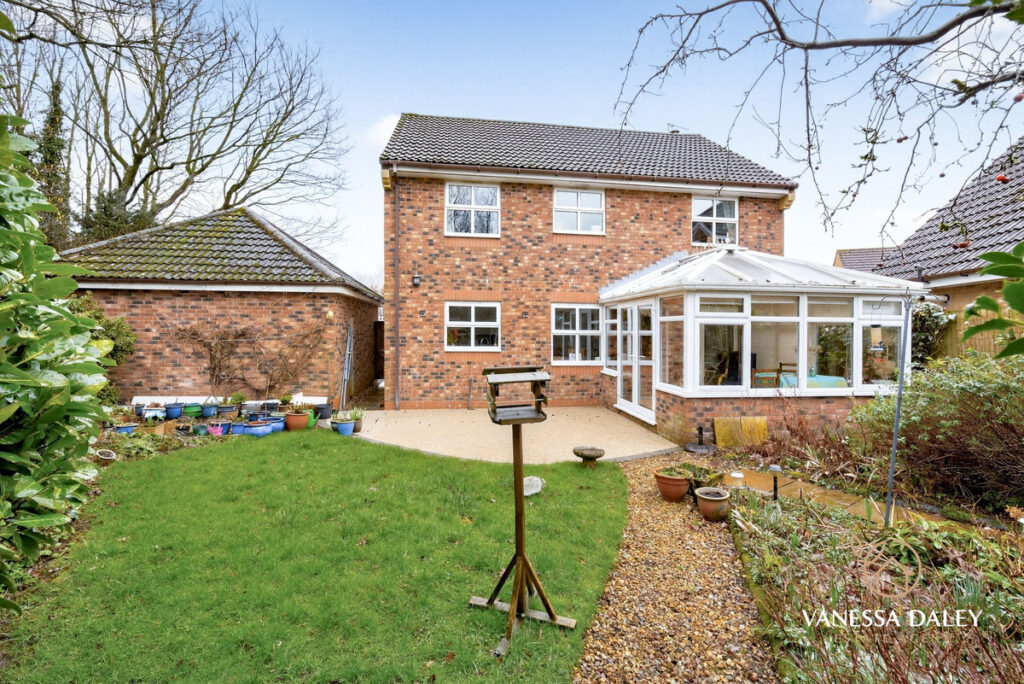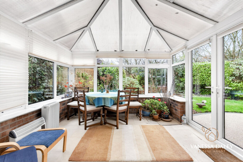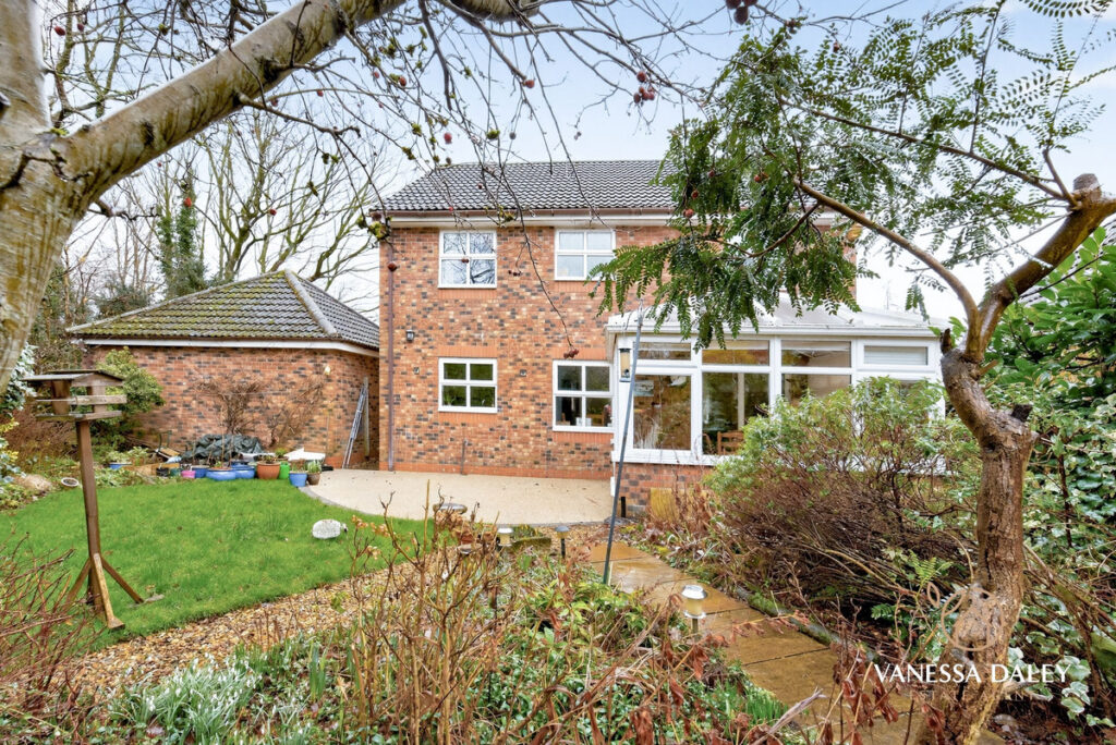 All of the internal rooms are a great size allowing a family to utilise the space to the maximum. The layout flows well which separate rooms which conveniently interlink with doors between for a more open plan feel if desired. The main living room has a pretty outlook over the front lawned garden and cul de sac beyond, yet the other properties are a good distance away which adds to the secluded feeling. Double doors open to the dining room which the current owners sometimes use as a snug and other times as a dining space for formal dining. The garden room makes a great additional space too and brings the outside in and is a good size versatile for different uses.