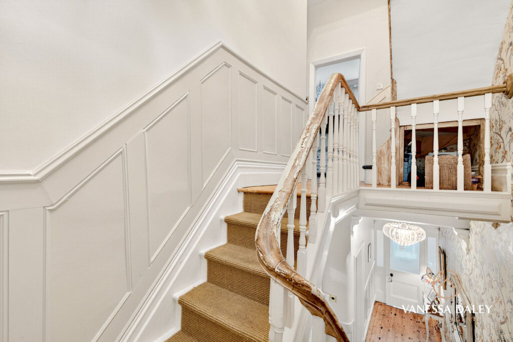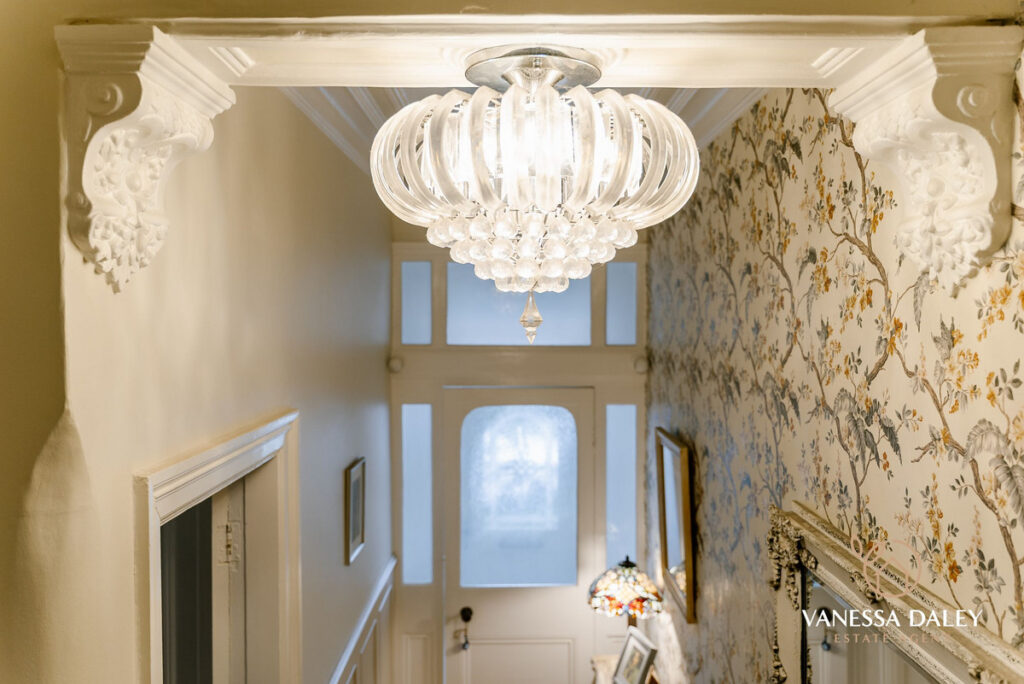 The impressive entrance opens firstly to the vestibule with original Edwardian tiled flooring and step up with secondary door to the hallway. The grand ceilings with ornate coving elevate the space and a beautiful swan neck staircase leads to the first floor split level accommodation.