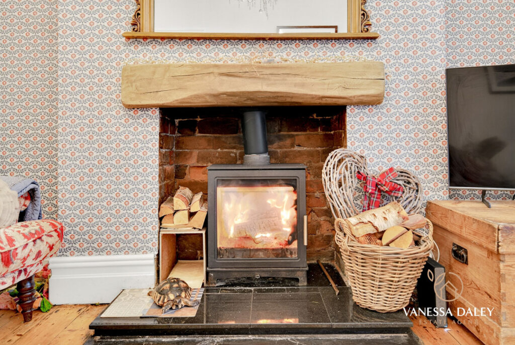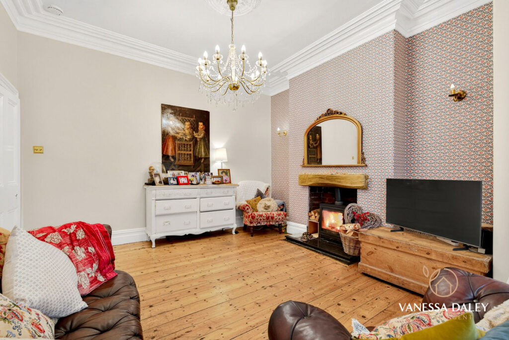 The first of two generous reception rooms has a wonderfully cosy yet spacious feeling with original flooring, feature fireplace housing a wood burning stove and large bay window to the front allowing the natural daylight to flood into the space. The bay window is fitted with high end shutter blinds.