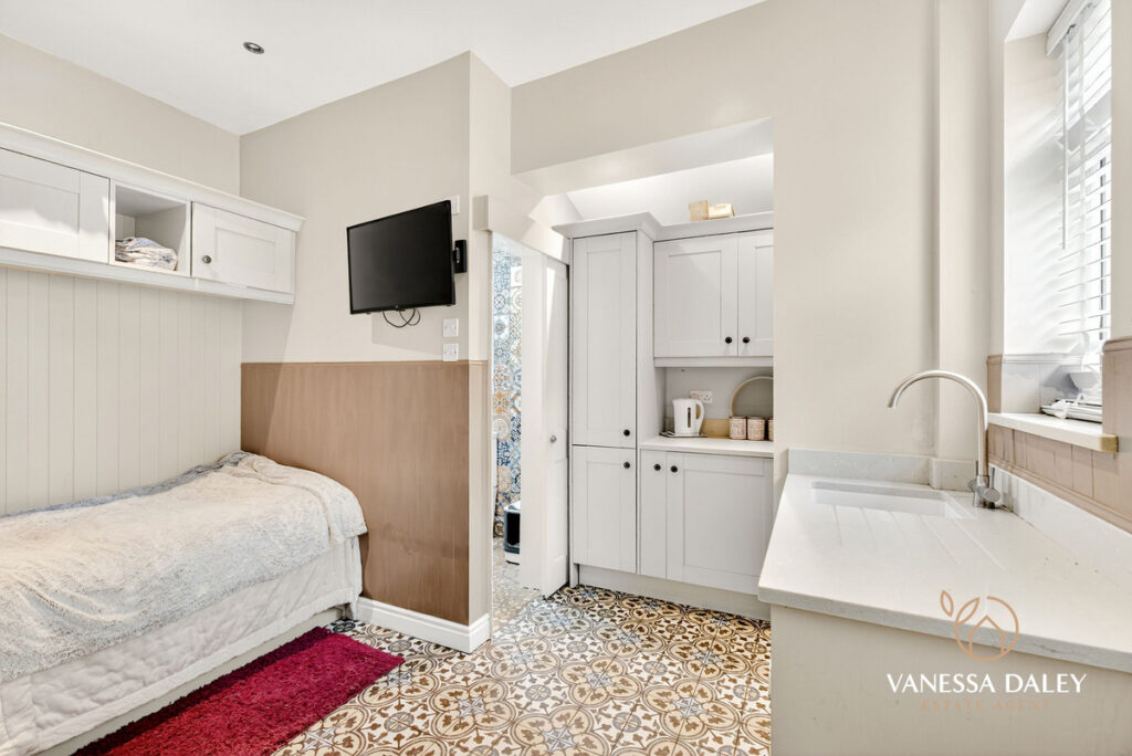 In additional to the already incredible space, off the kitchen is a studio suite, ideal for independant living for a teenager or relative yet still remaining part of the main home. With wet room / bedroom and kitchenette utility space. A door opens to the garden too.