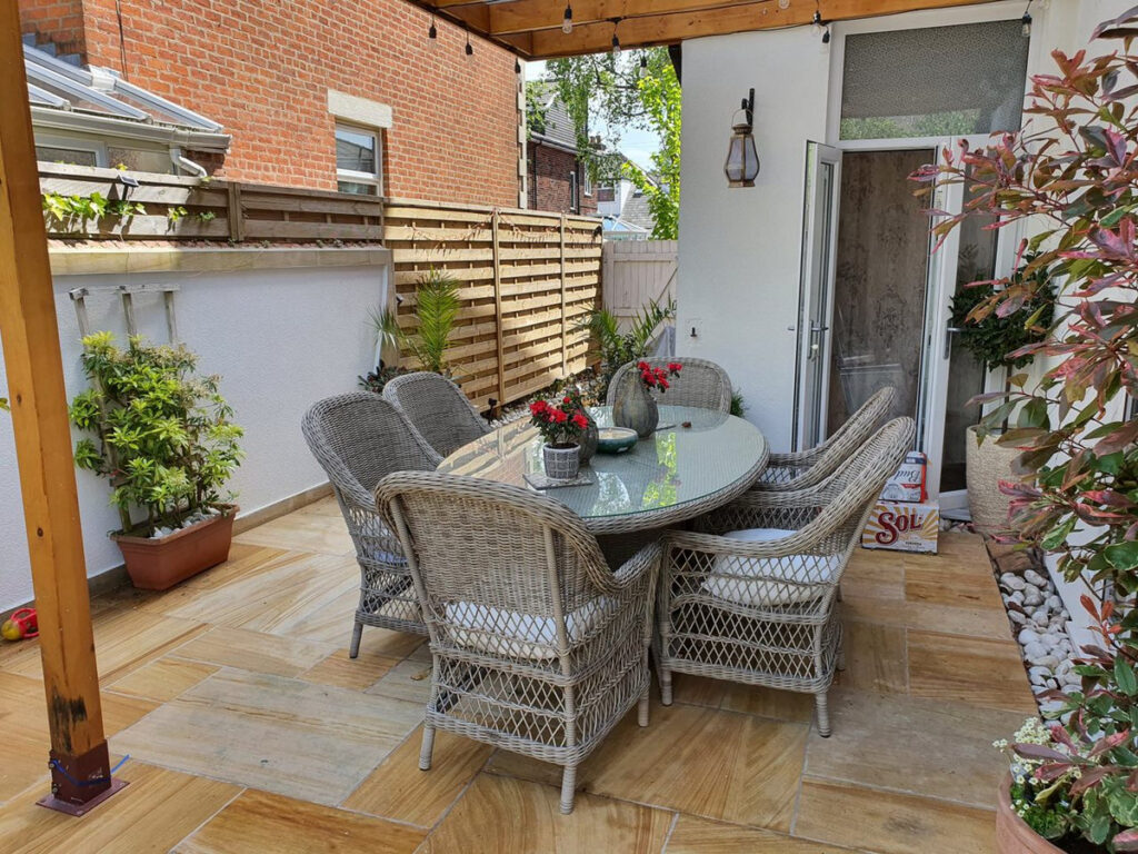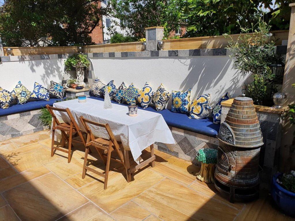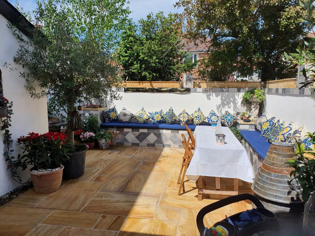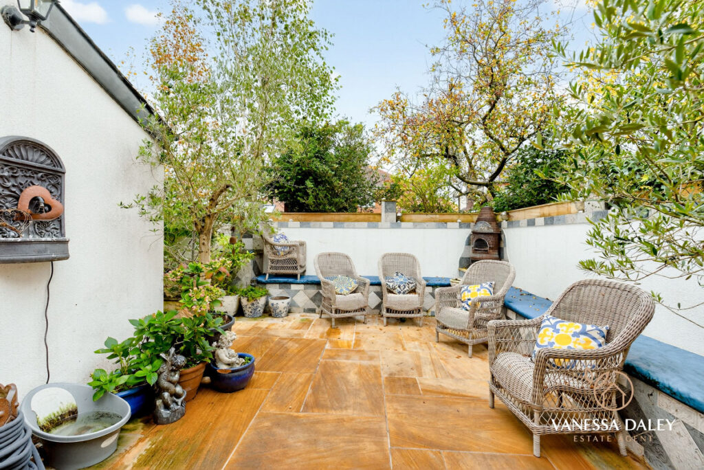 Lets talk about the garden…. a Mediterranean inspired haven of peace and tranquility. L-shaped with very little maintenance required. High quality stone paving, tiled seating area and a covered seating area make the area ideal for outdoor entertaining and dining.