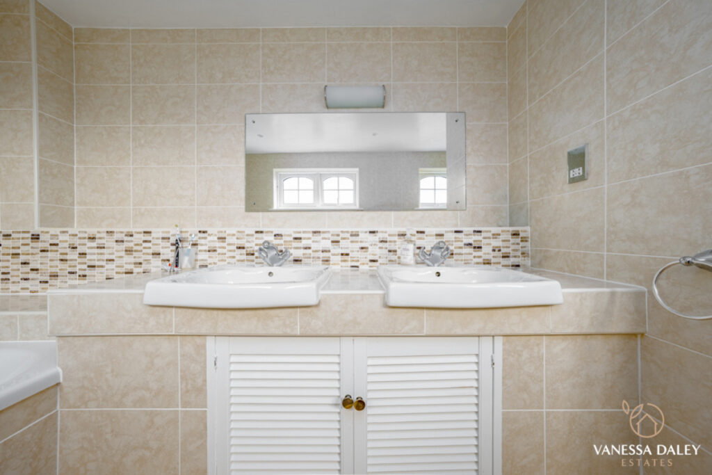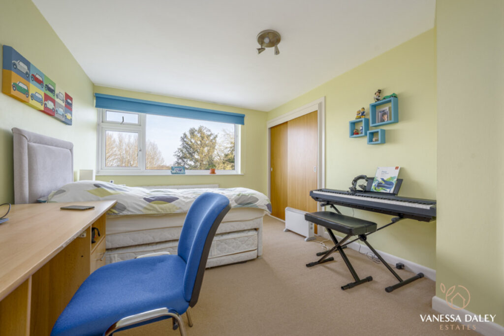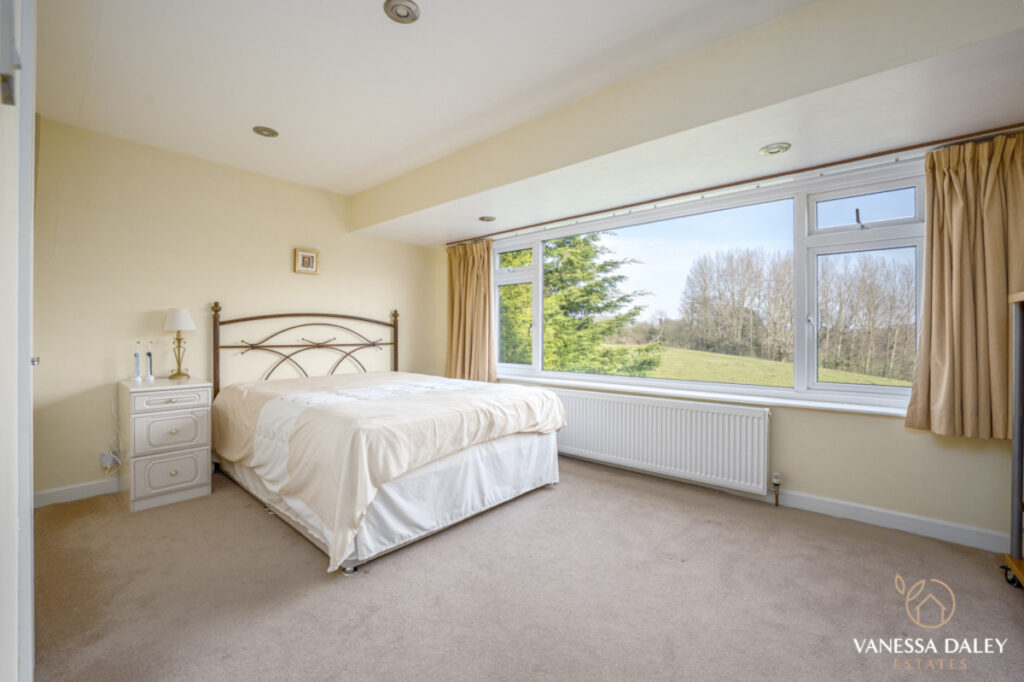 The space continues to the first floor, with a landing which spans the width of the property and gives access to the bedrooms. Architecturally designed, the 4 main bedrooms all face the garden and enjoy views beyond. The 5th bedroom is the only front facing bedroom and is ideal as a home office.