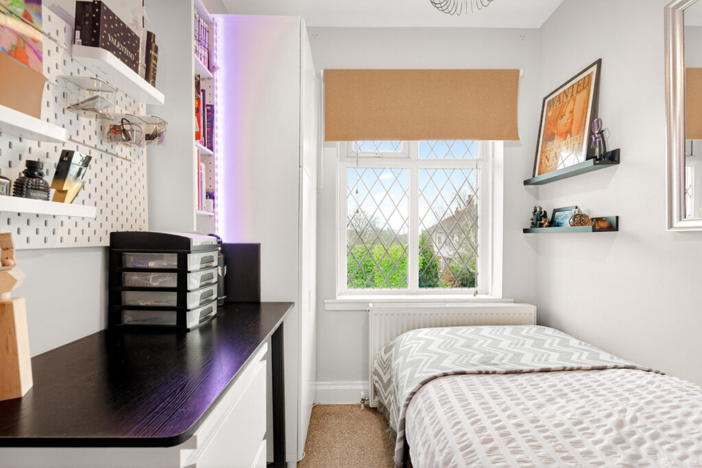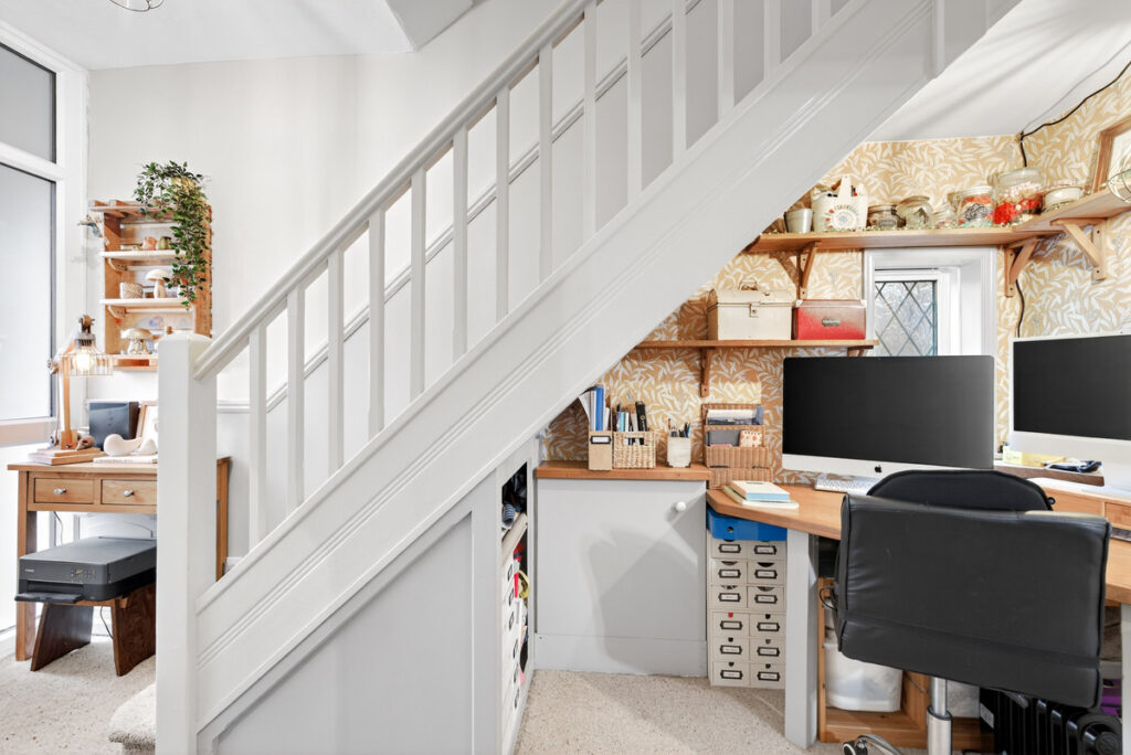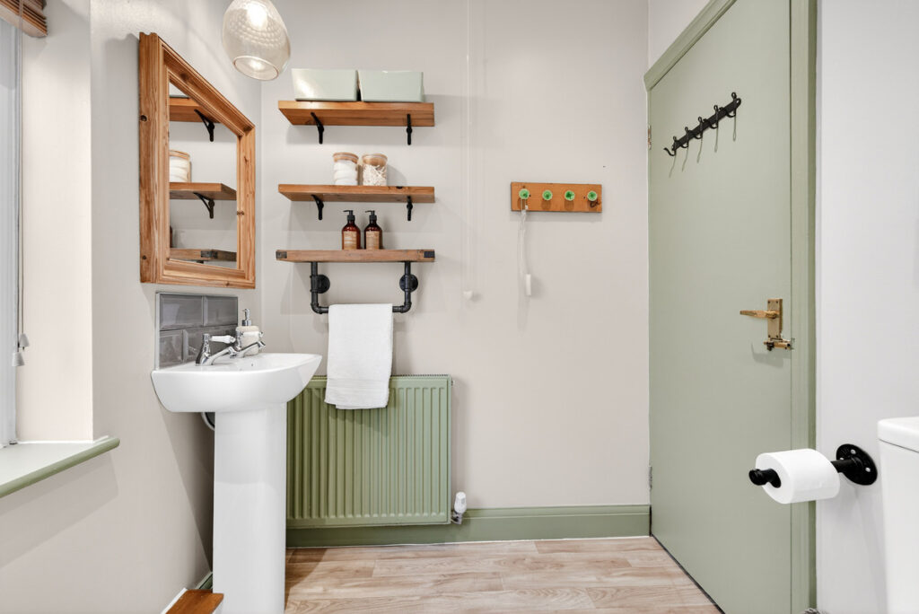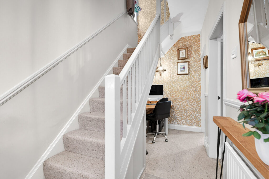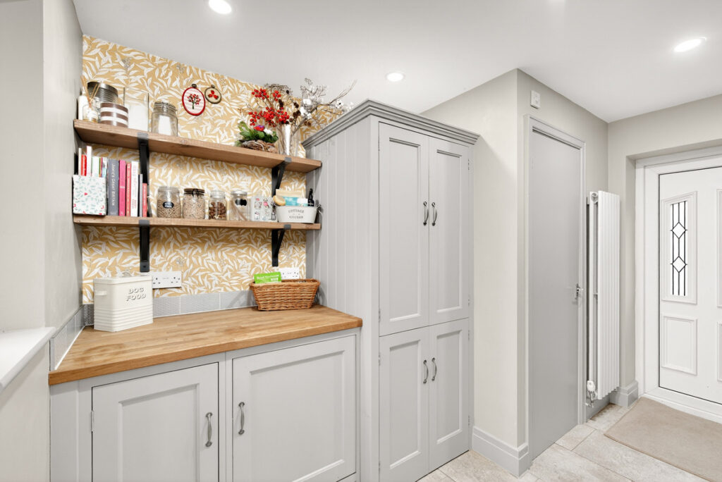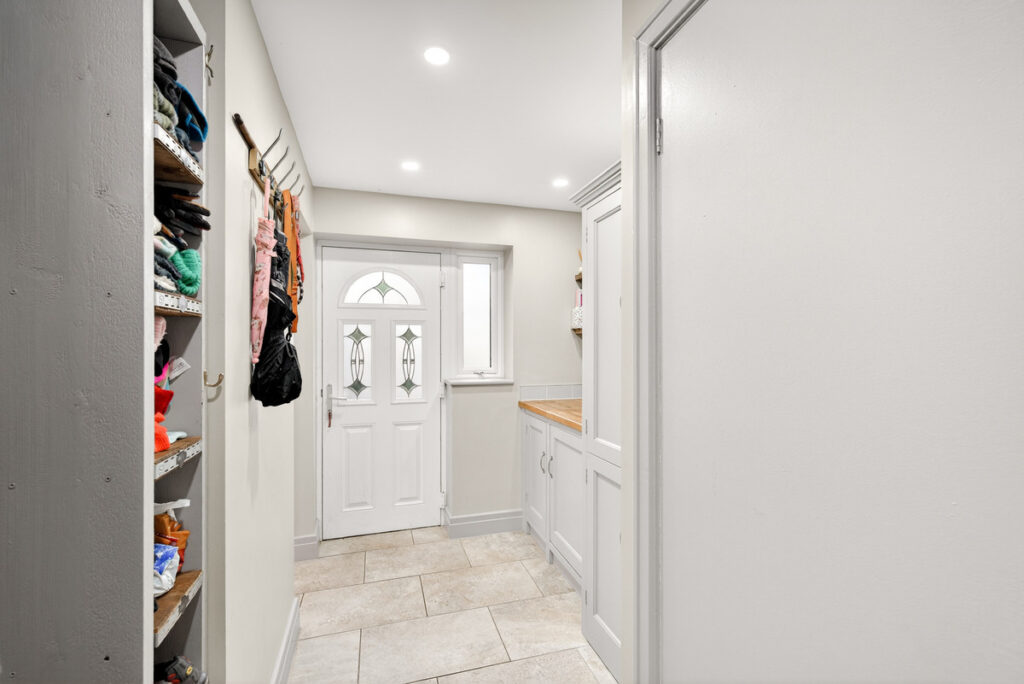 Adjacent to the kitchen is a cleverly crafted space which is not just an ordinary utility space. There’s access to the front driveway and also to the garden so it makes for an ideal boot room with lots of storage cupboards and cloaks space. From here there is a ground floor WC.