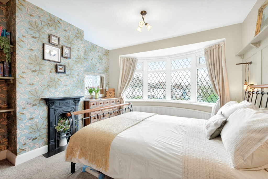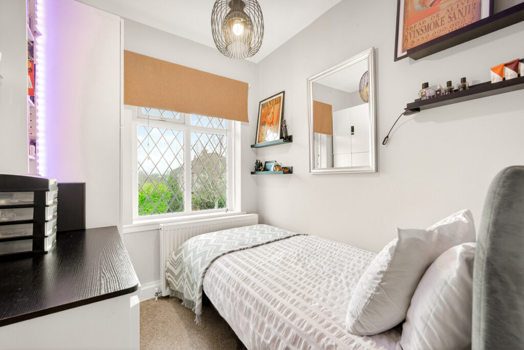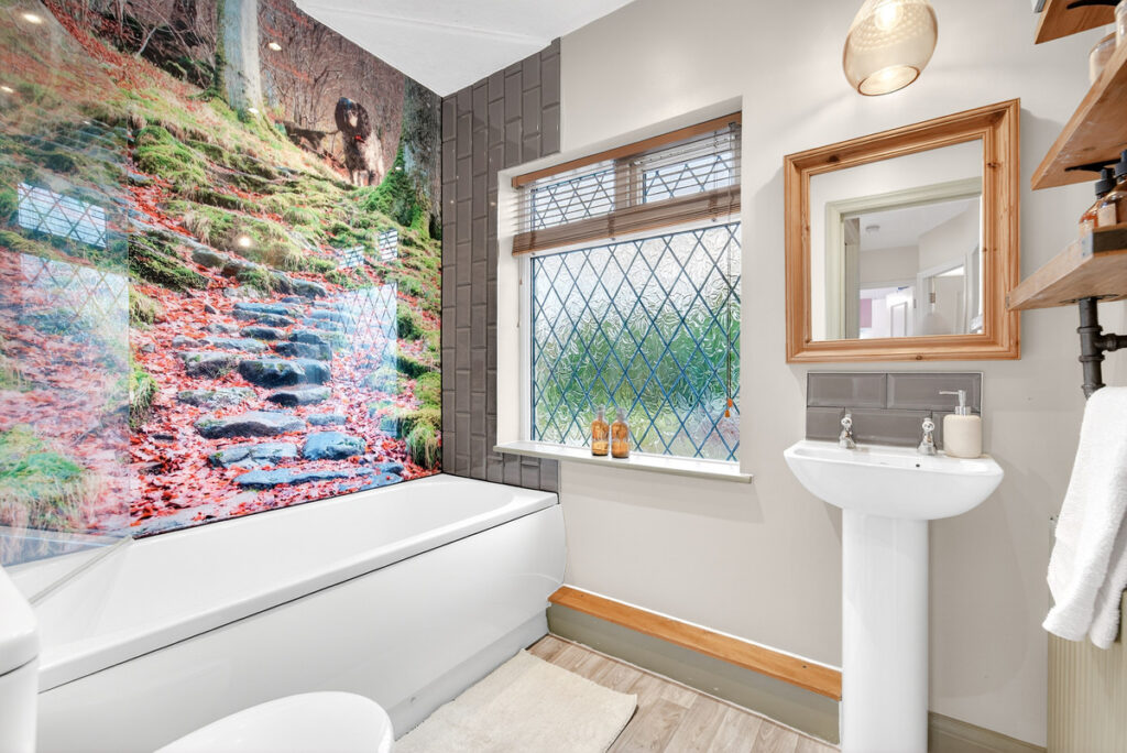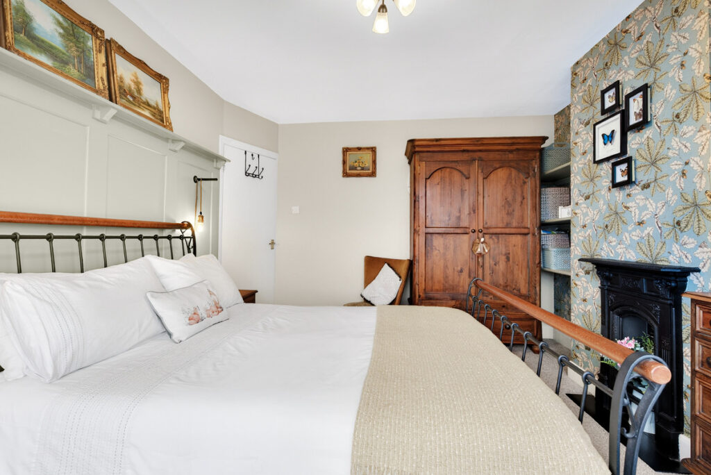 The first floor living is equally appealing with two double bedrooms and a single bedroom. Bedroom one has a curved bay window to the front and an attractive cast iron feature fireplace and panelled walls. The bathroom is well presented too with an acrylic feature wall around the bath.