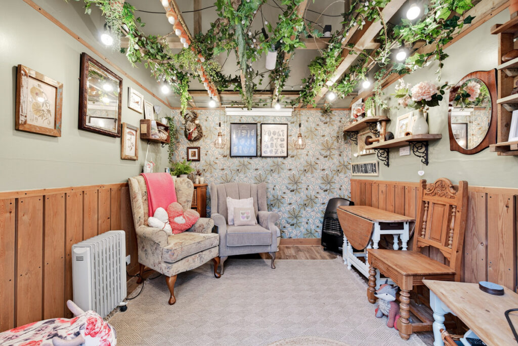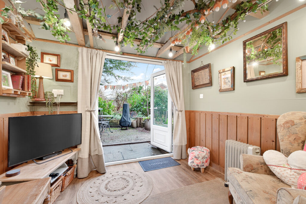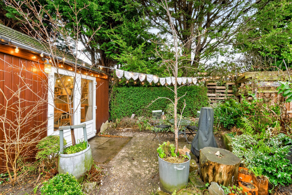 The outdoor space is fabulous with a detached concrete garage with timber attached workshop with power, lighting and internet and an attached summer house which is a cottage style living room with wooden flooring and power and lighting. A great space for a home office, or hobby room. Outbuilding dimensions. Shed 4.7m x 3.1m. Summer house 2.8m x 3.1m. Despite the extended living, the garden remains an excellent size and is completely enclosed and secluded by trees to the bottom.