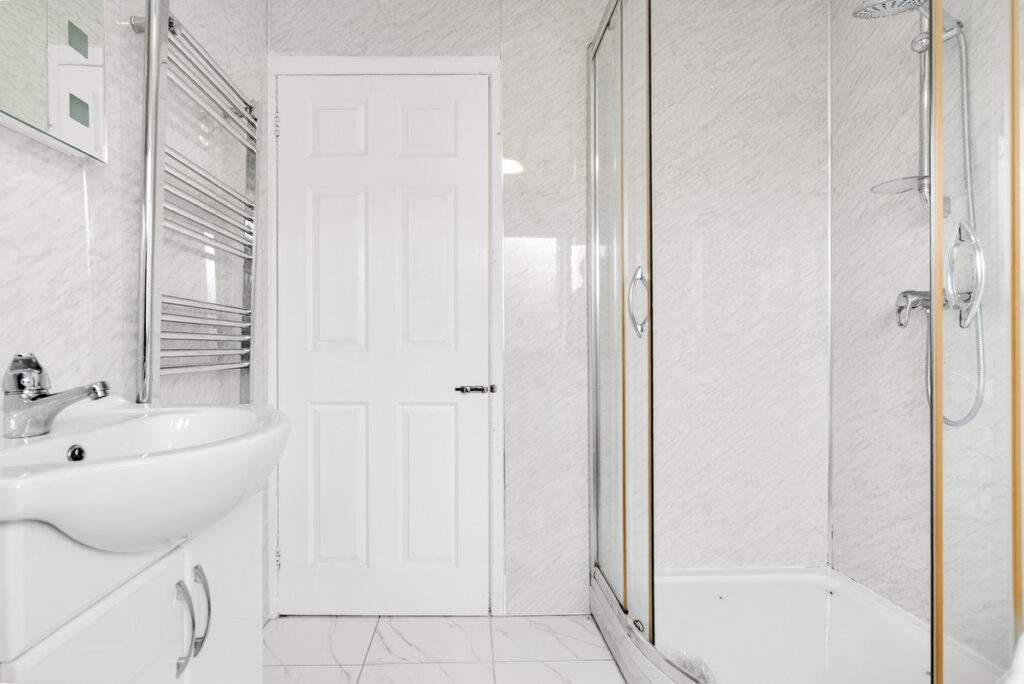 Upstairs two double bedrooms and single bedroom complete the small with 4 piece family bathroom boasting shower and bath, a good size for modern families. It has a white suite and fully tiled white walls.