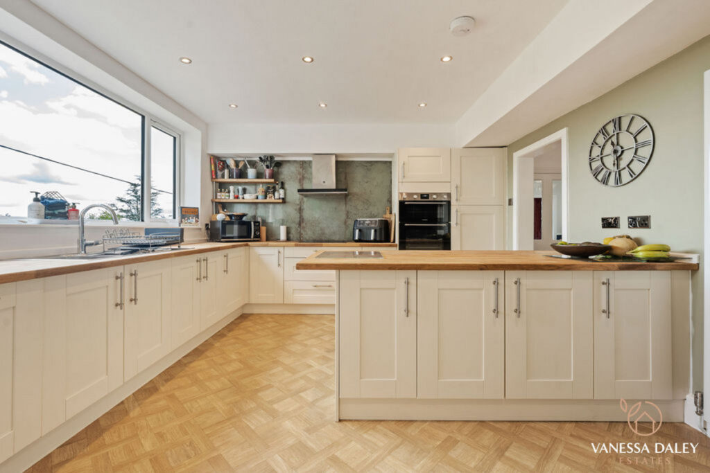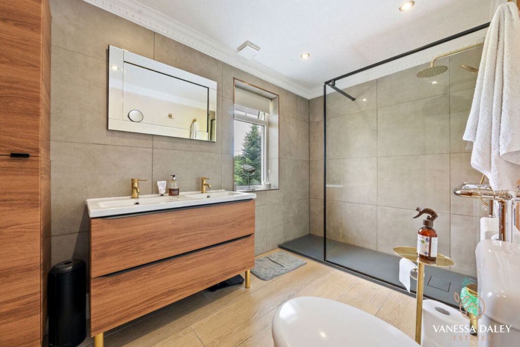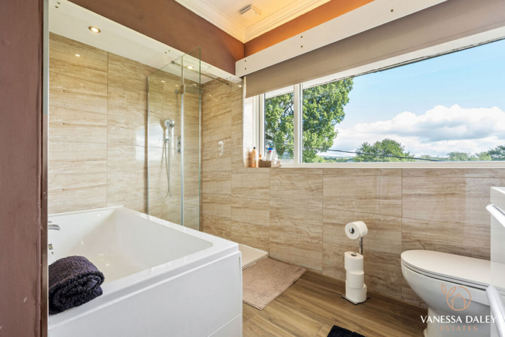 With four double bedrooms to the first floor, this home feels generously proportioned totalling over 2400 sq ft of living space overall and is ideal for families and multi-generational families. The master suite has superb storage with fitted wardrobes to one entire wall. The en-suite is newly renovated with triple walk in shower, fully tiled walls and elegant fixtures and fittings. The second bedroom has access to the stunning balcony and from here the views are incredible. With a spacious family bathroom to complete the accommodation, fully tiled with deep fill bath and separate shower and a large window with stunning views over the surrounding countryside.