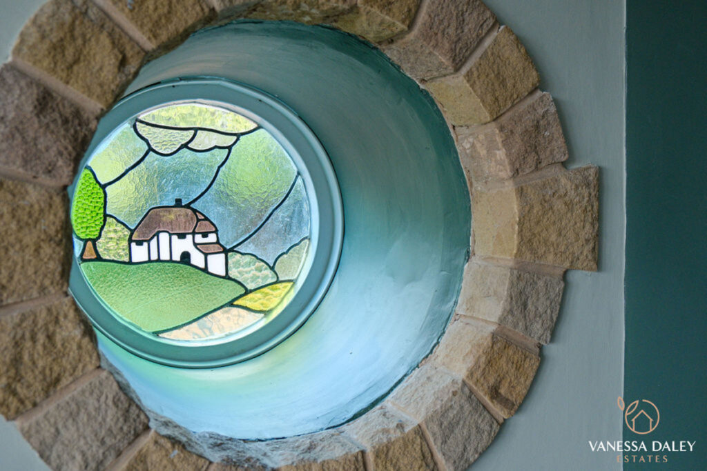 The south facing uniquely designed sun porch draws you into the property and the floor to ceiling glass gives a pretty outlook to the garden and offers the perfect sitting room for balmy summer nights or morning coffee. The main entrance door opens up into an elegant reception hallway with half return oak staircase turning to the first floor with half landing and stunning oversized window with vista over the garden and scenery beyond.