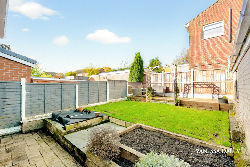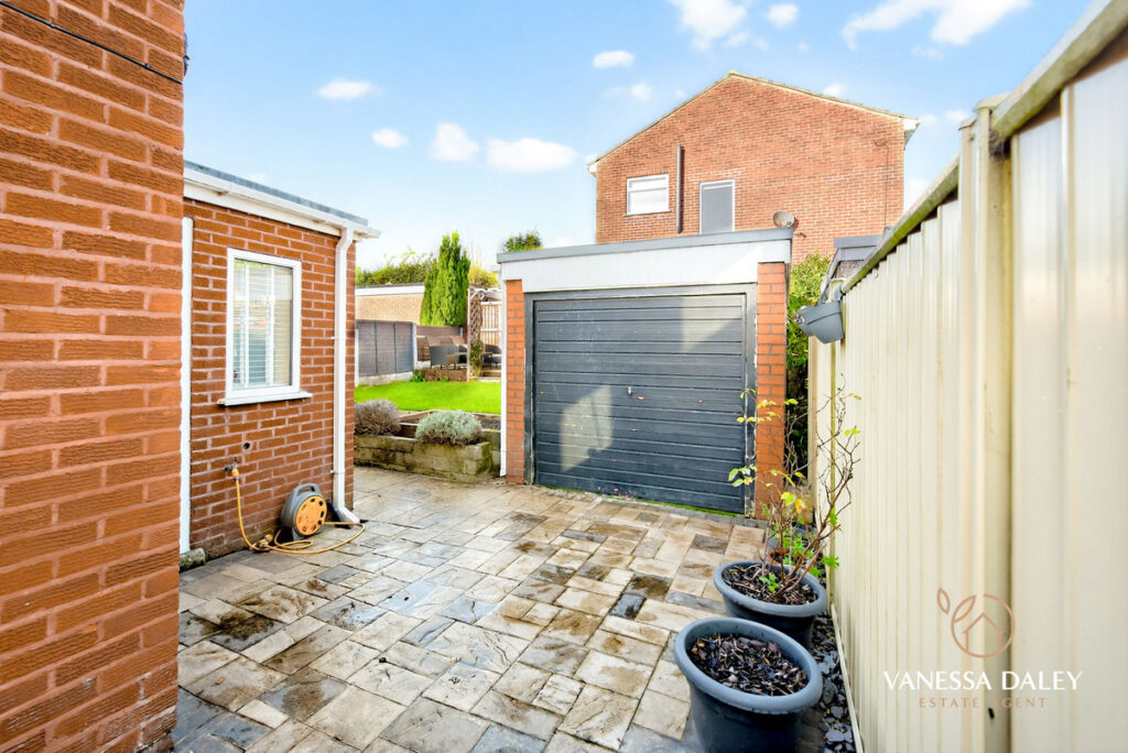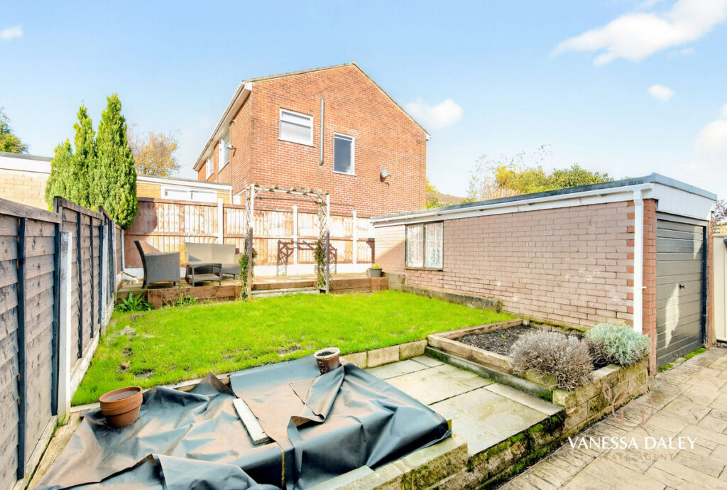With a secluded garden, landscaped to include raised borders for planting or growing vegetables and a good sized patio, this garden is ideal for families and is totally private. The detached garage has an up and over door but no power but this could be added at a later stage.